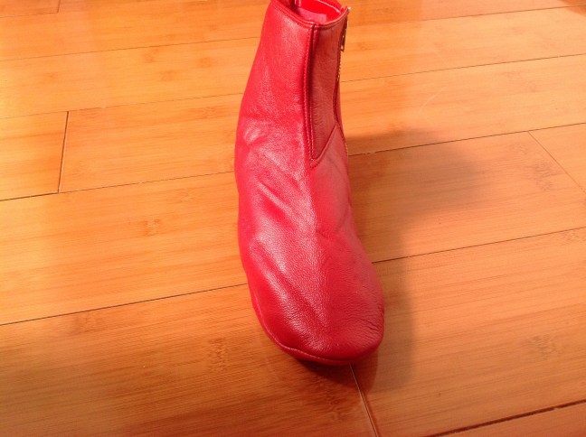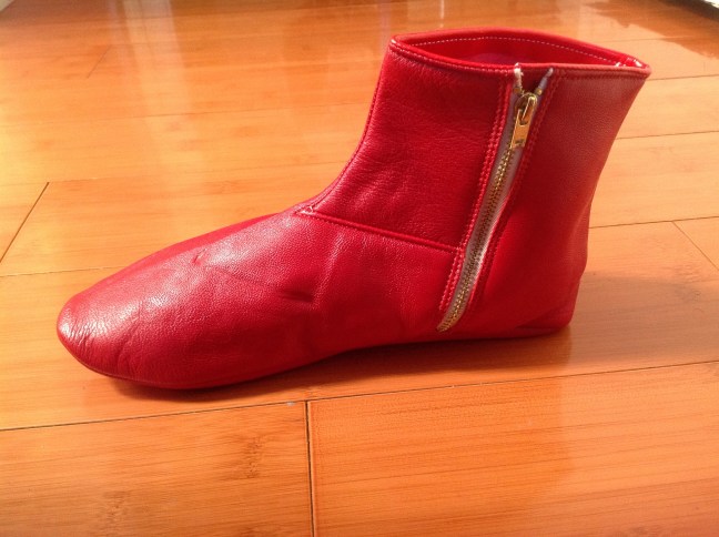 So, our samples arrived rom Turkey and Pakistan the other day. We ordered some round toe tabi socks aka leather socks. One ankle ballet flat type, and the other kind of like an ankle ballet bootie type.