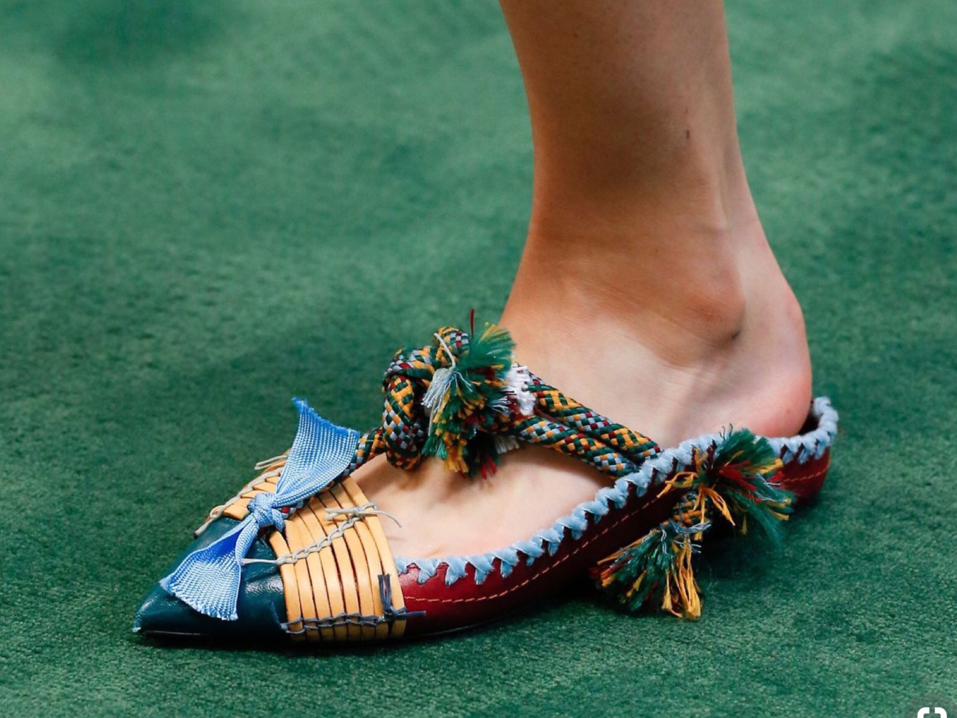 Loving the leather fringed pom poms, ethnic twist, and overall style and uniqueness of the shoe collection for Spring Summer 2018.