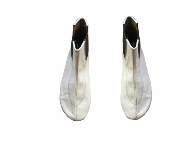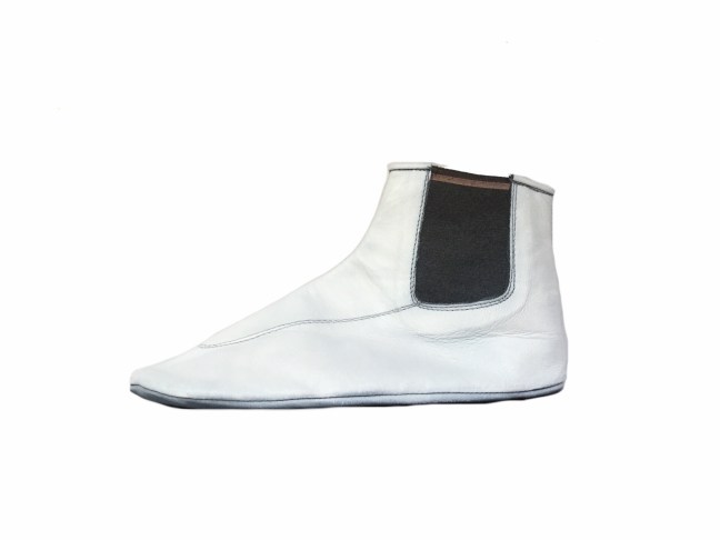 So, our samples arrived rom Turkey and Pakistan  the other day. We ordered some round toe tabi socks aka leather socks. One ankle ballet flat type, and the other kind of like an ankle ballet bootie type.